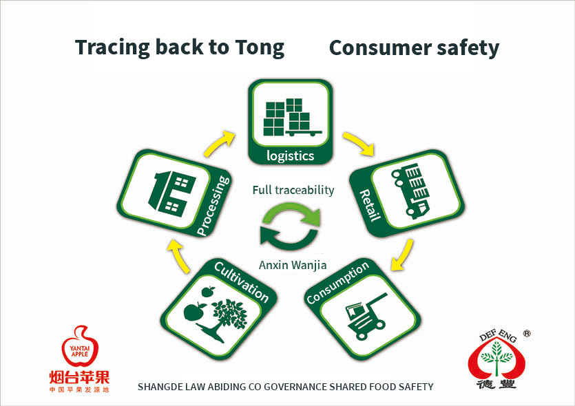 In order to strengthen product quality management, the company has established its own apple, pear, and grape bases, and strictly implements the green food production technical operating procedures and global good agricultural practices for the whole process of fruit production. The traceability accuracy is specific to each plot.